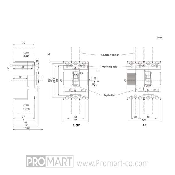 | نوع کلید | Molded Case Circuit Breaker (MCCB) |